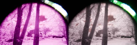 In questo modo si può notare la differenza fra la foto infrarossa e la luce “normale”, visibile nella finestrella lasciata libera.