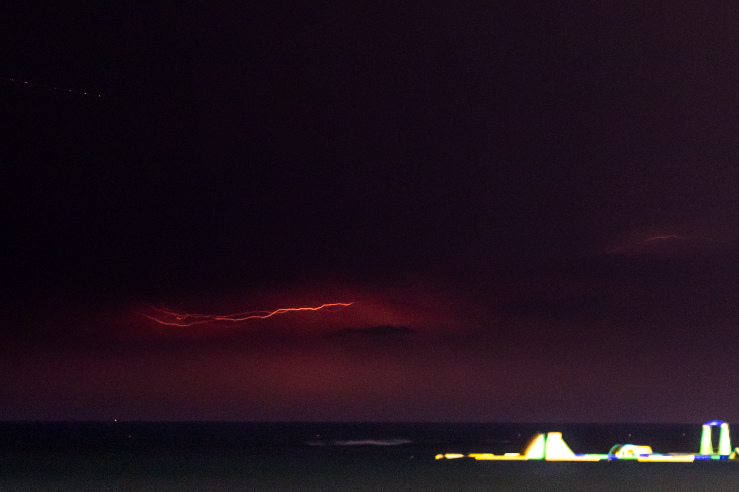 Ieri sera ho visto che stava per arrivare un temporale, e allora mi sono precipitato al mare per fare due foto. In realtà ne ho fatte 99, di cui solo 13 buone. Vicino a me c’era un gruppo di ragazzi, e una sola ragazza, con tante birre. Sulla panchina accanto si sono succedute varie coppie, fino ad arrivare a una quaterna di anziani a cui non stava bene proprio niente. Ancora coppiette, e cani, a camminare avanti e indietro, e io temevo abbattessero il treppiede. Sono stato a fotografare circa due ore, poi mi è venuto il mal di testa e sono tornato a casa. Fine della storia.