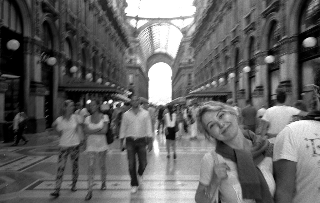 Un altro sguardo in macchina, stavolta un sorriso volontario. Anzi, la ragazza, mi ha voluto fare uno scherzo. Passando accanto, io non l’avevo vista, ha guardato nell’obiettivo e ha detto “Cucù” con una voce così sonora che mi ha fatto fare un sobbalzo, mentre scattavo, ed infatti la fotografia è venuta mossa. Poi è fuggita ridendo, e di lei mi è rimasta quest’immagine fugace. Mi piace questa foto, pur se mossa, perché è testimonianza di un momento autentico, e non sempre si può dire altrettanto di altre immagini così perfette.