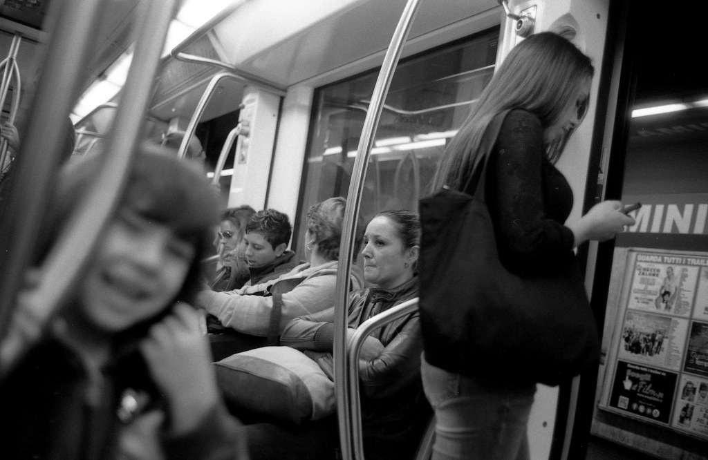 Cominciamo con le foto sottoterra, come a me piace chiamare le immagini in metropolitana. Ho scritto anche un racconto lungo sulla metropolitana. Io adoro la metropolitana. Un mondo a parte, sepolto sotto la terra, dove la gente non è come sopra. Fateci caso. Chiusi, schivi, ignari e disattenti se non a se stessi. Ognuno ha il suo universo personale, e ritrarre questa varia umanità è un esercizio molto utile, a mio avviso. A me piace la metropolitana. Molto.