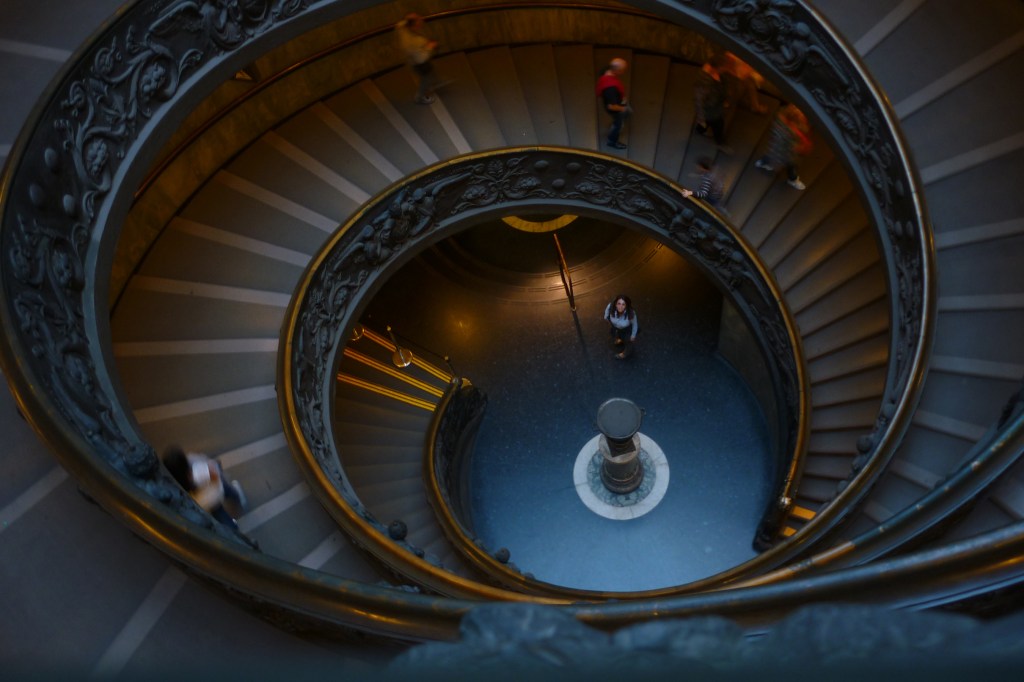 L’iconica spirale della scalinata ai Musei Vaticani. La spirale, richiamo alla perfezione aurea, che poi è il simbolo da me scelto come logo. Di certo ci sono migliaia di foto come questa, ma nessuna ha LEI al centro!